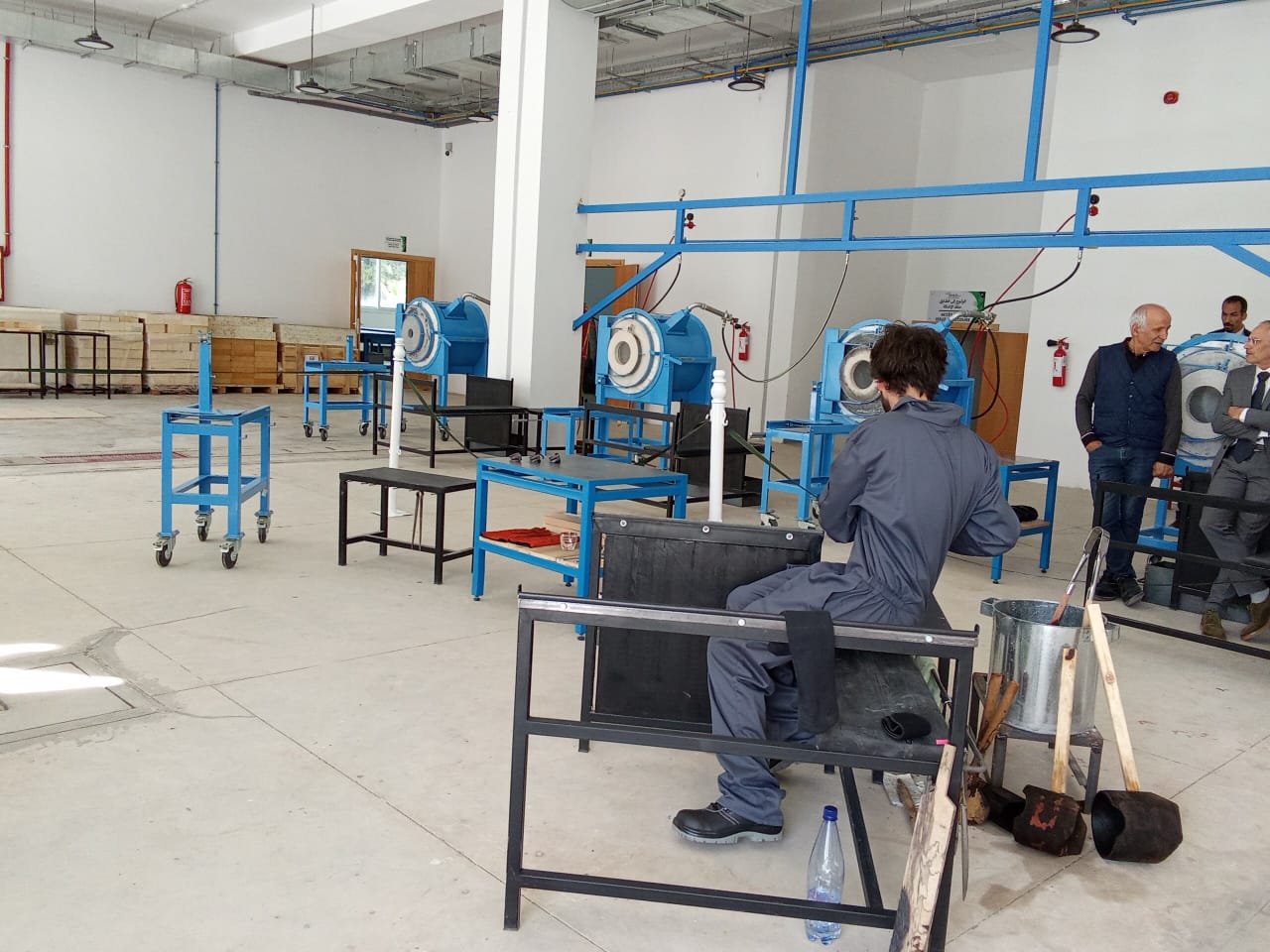 بعدها قام الوفد بجولة بأروقة المعهد بكل من ورشات النجارة ، و الحدادة الفنية ، و الفخار و الخزف ، و الفصالة و الخياطة التقليدية و العصرية .