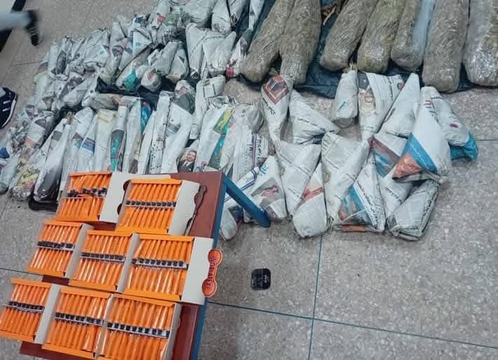 وخلال تفتيش المركبة، تم حجز ما مجموعه 14 كيلوغراماً من مخدر الكيف (سنابل)، و2 كيلوغرام من أوراق طابا، بالإضافة إلى 320 علبة من لصاق “السيليسيون” شديد الخطورة، والذي يُعتبر من المواد المدمّرة لصحة الشباب.