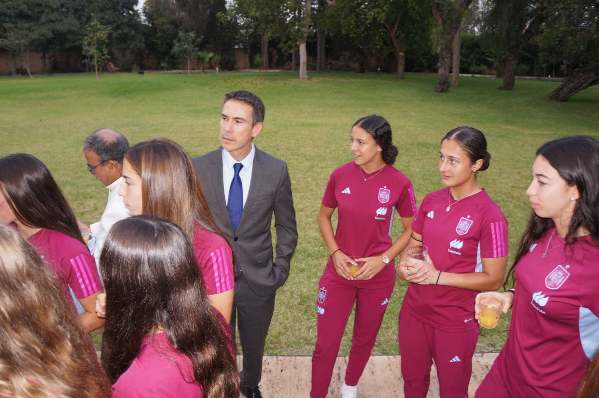 Dans une ambiance empreinte de convivialité et de fierté, l’Ambassade d’Espagne à Rabat d’Enriqué Ojeda a eu le plaisir d’accueillir l’équipe nationale féminine espagnole des moins de 17 ans (@SEFutbolFem U-17), qui participera à la Coupe du Monde féminine U-17 de la FIFA organisée cette année au Maroc.