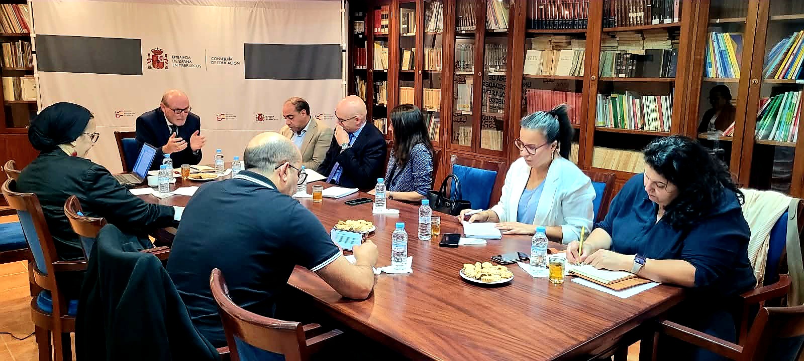 Le Conseiller de l’Éducation auprès de l’Ambassade d’Espagne au Maroc, accompagné de son équipe, a tenu ce matin une réunion de travail avec la Fédération des Associations de Mères, Pères et Tuteurs des élèves des centres éducatifs espagnols implantés dans le Royaume.