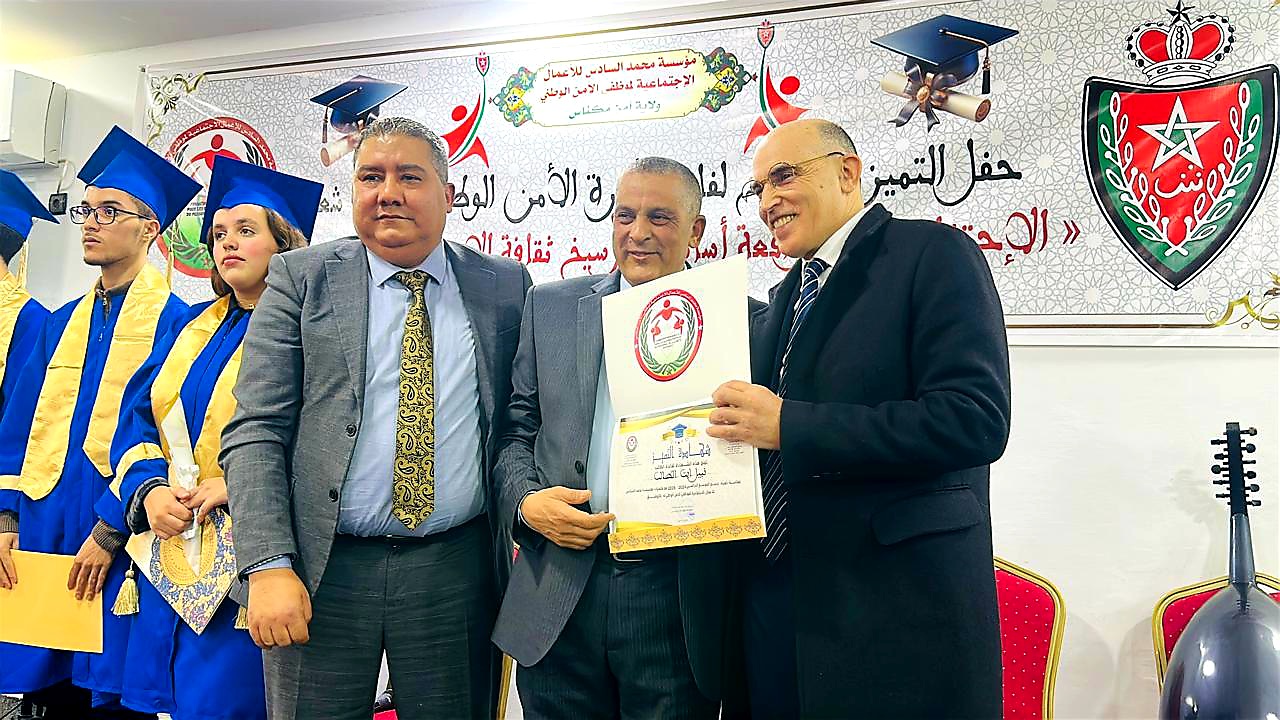 الحفل نظم في أجواء مفعمة بالفخر والاعتزاز، بحضور السيد والي الأمن بمكناس، الصديق طرشولي، إلى جانب رؤساء المناطق الأمنية وعدد من موظفي وموظفات الأمن الوطني، الذين شاركوا أبناءهم لحظات الاحتفال والتشجيع.