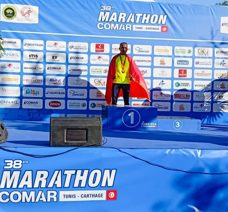 وانتزع الرتبة الأولى والتتويج بالذهب في سباق 1500م داخل المدمار ليختم تتويجاته ضمن البطولة الافريقية للماسترز بذهبية ثانية ضمن سباق 21كلم على الطريق