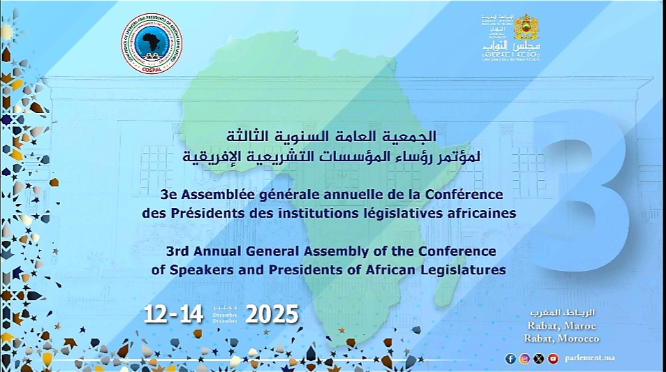 يحتضن مجلس النواب بالمملكة المغربية، خلال الفترة الممتدة من 12 إلى 14 دجنبر 2025 بالرباط، أعمال الدورة الثالثة للجمعية العامة لمؤتمر رؤساء البرلمانات الإفريقية (CoSPAL)، والتي تُنظَّم تحت شعار: “الريادة التشريعية والدبلوماسية البرلمانية في نظام عالمي متغير”.