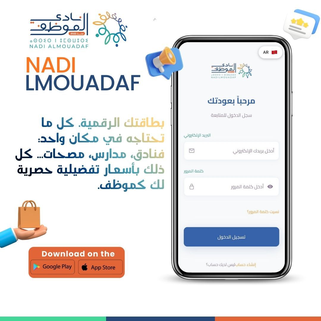 انطلاقاً من إيمانه بأن العمل الاجتماعي الحديث يمر حتماً عبر التحول الرقمي، جعل نادي الموظف من الرقمنة اختياراً استراتيجياً وليس مجرد أداة تقنية، وذلك عبر إطلاق تطبيقه الذكي Nadilmouadaf.
