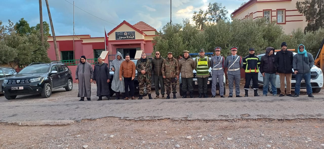 في إطار الإجراءات الوقائية التي توصي بها لجنة اليقظة الإقليمية، قامت السلطة المحلية بقيادة ميسور، تحت إشراف السيد رئيس الدائرة، وبتنسيق مع قائد قيادة ميسور وخليفته، بتنفيذ مجموعة من التدابير الاستباقية، من خلال التدخل السريع عند انقطاع المسالك أو تدهور الرؤية، ورفع مستوى اليقظة والتنسيق بين مختلف المتدخلين (جماعتي ويزغت وسيدي بوطيب، الوقاية المدنية، الدرك الملكي، والقوات المساعدة)، بما ينعكس إيجاباً على استمرارية التنقل وتأمين الخدمات الحيوية، حتى في حال تسجيل اضطرابات ظرفية ناجمة عن سوء الأحوال الجوية.
