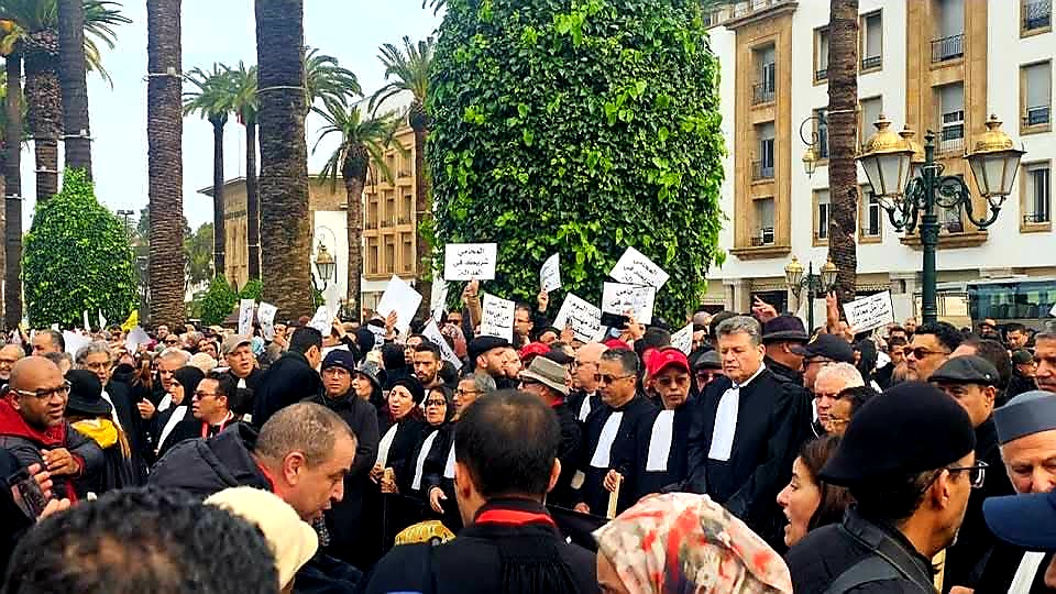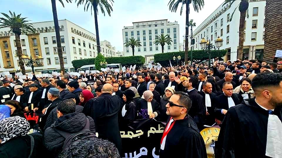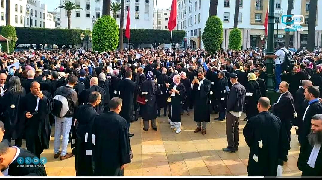 احتج آلاف المحامين المغاربة، اليوم الجمعة، أمام مقر البرلمان في العاصمة الرباط، رفضا لمشروع قانون تنظيم مهنة المحاماة.