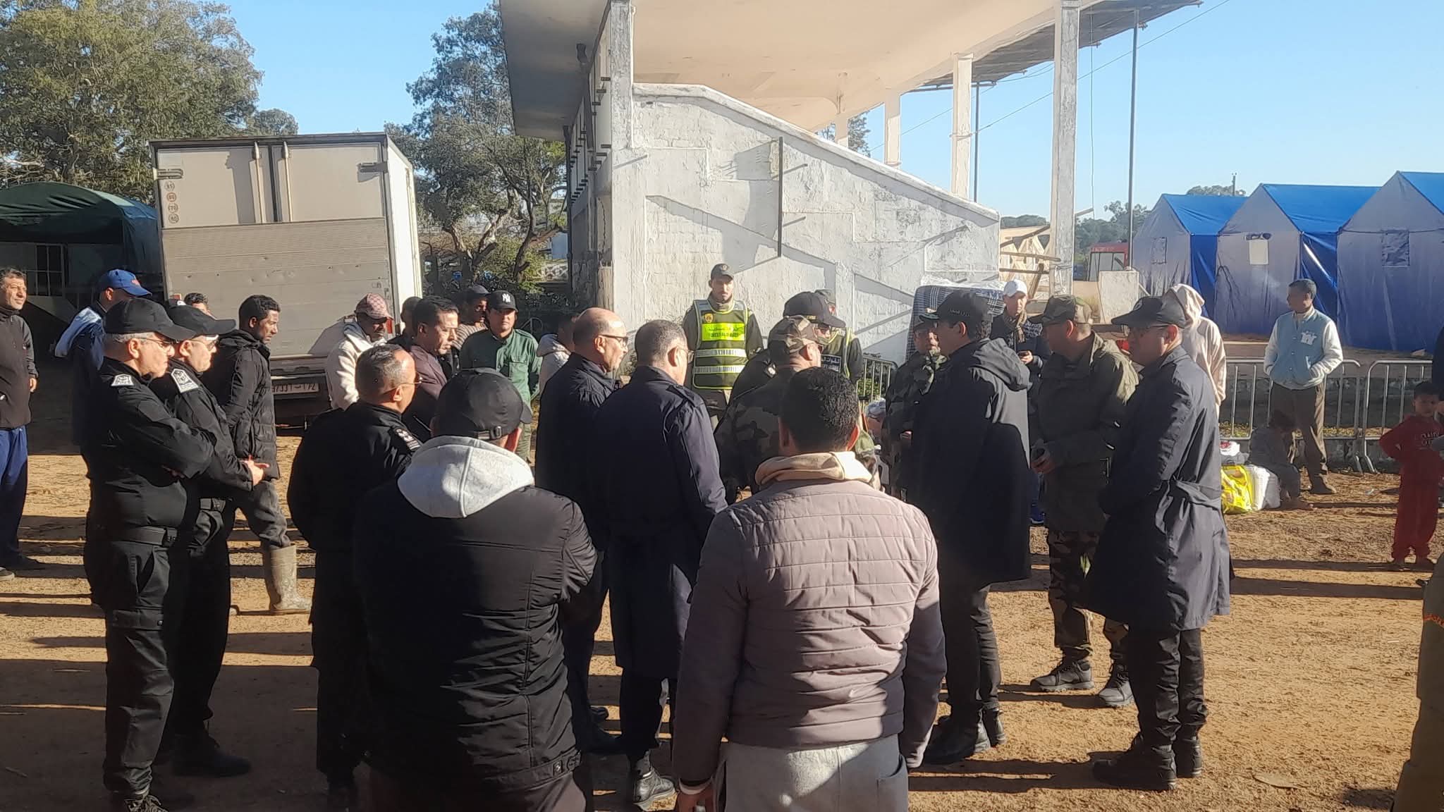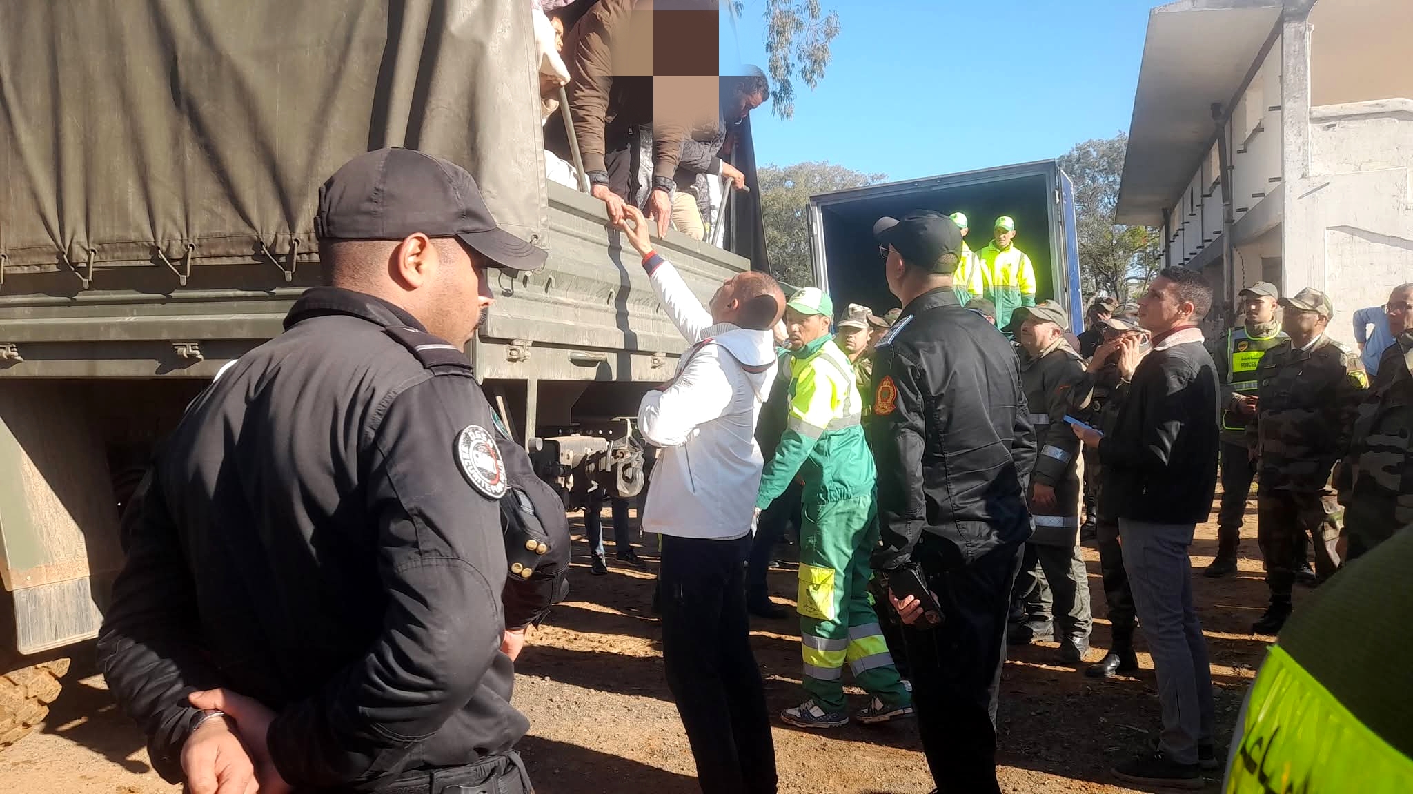 وقد تمت هذه العملية بحضور كبار المسؤولين الأمنيين والإداريين، حيث جرى تنزيل مخطط محكم شمل ترتيبات أمنية ولوجستية متكاملة، من خلال تعزيز محيط المخيم وانتشار مكثف لمختلف التشكيلات الأمنية، بما ضمن انسيابية عملية النقل وحفاظًا على سلامة المواطنين.