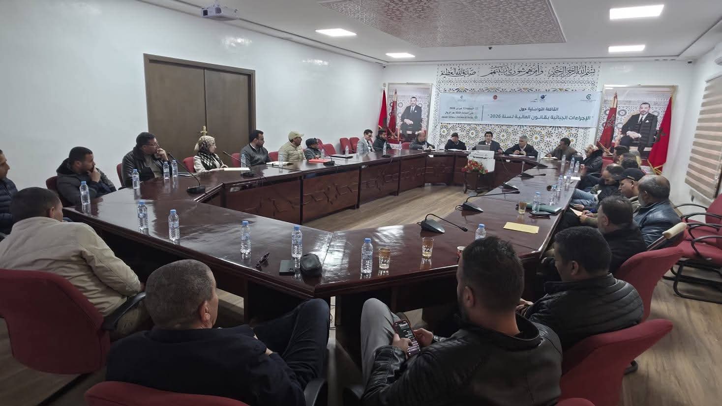 ترأس أشغال هذا اللقاء السيد محمد الطويلب عضو الغرفة، وحضره السيد عبد العزيز باخيي عضو الغرفة ورئيس لجنة دعم المنتسبين والتنشيط المحلي لإقليم بولمان، وقد عمل على تنشيط هذا اللقاء السيد أحمد خربوش، رئيس المصلحة الجهوية للواعاء الضريبي بالمديرية الجهوية للضرائب بفاس، من خلال عرض مفصل شرح فيه آخر المستجدات الضريبية الواردة في قانون المالية لسنة 2026، والتي تصب في اتجاه في تعزيز الامتثال الجبائي وتحسين العلاقة بين الإدارة والملزمين، في اتساق تام مع انفتاح الغرفة على محيطها وتفعيل دورها كوسيط بين الفاعلين الاقتصاديين ومؤسسات الدولة، خدمةً لمصالح التجار والمهنيين، وتعزيزًا لمسار التنمية المحلية على مستوى الجهة ككل.