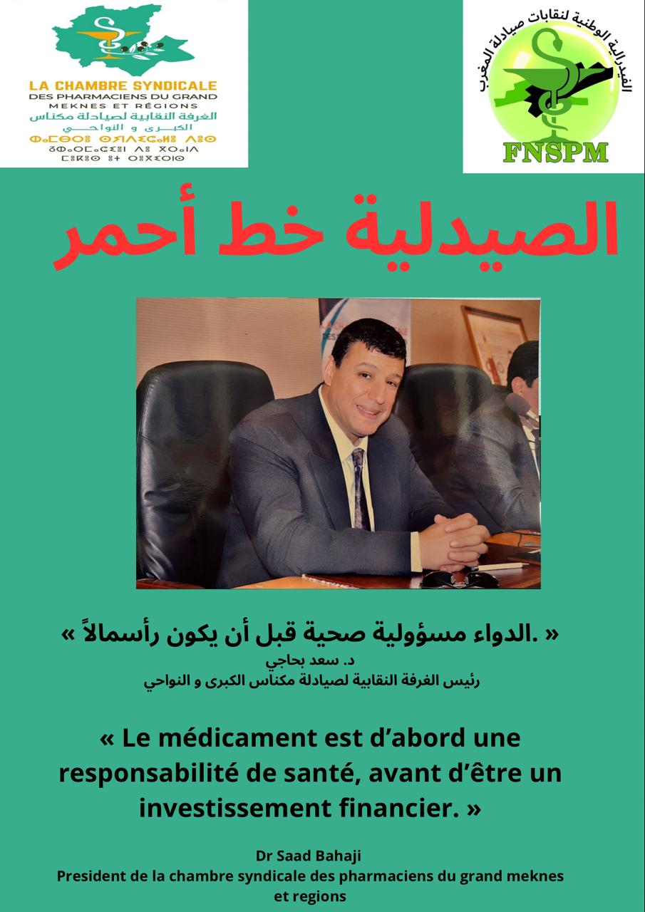 بقلم : سعد بحاجي رئيس الغرفة النقابية لصيادلة مكناس الكبرى و النواحي