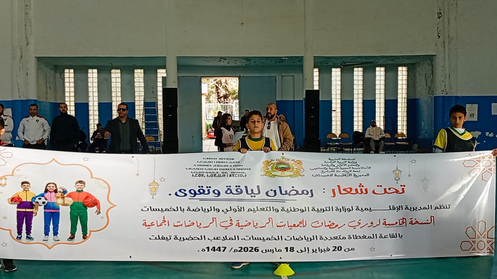 انطلقت مساء يومه السبت 7مارس الجاري الموافق ل 17 رمصان 1447 فعاليات النسخة الخامسة من الدوري الرمضاني للجمعيات الرياضية للرياضات الجماعية المنظم تحت إشراف المديرية الإقليمية لوزارة التربية الوطنية والتعليم الأولي والرياضة تحت شعار رمضان لياقة وتقوى من 20فبراير الى 18مارس الجاري