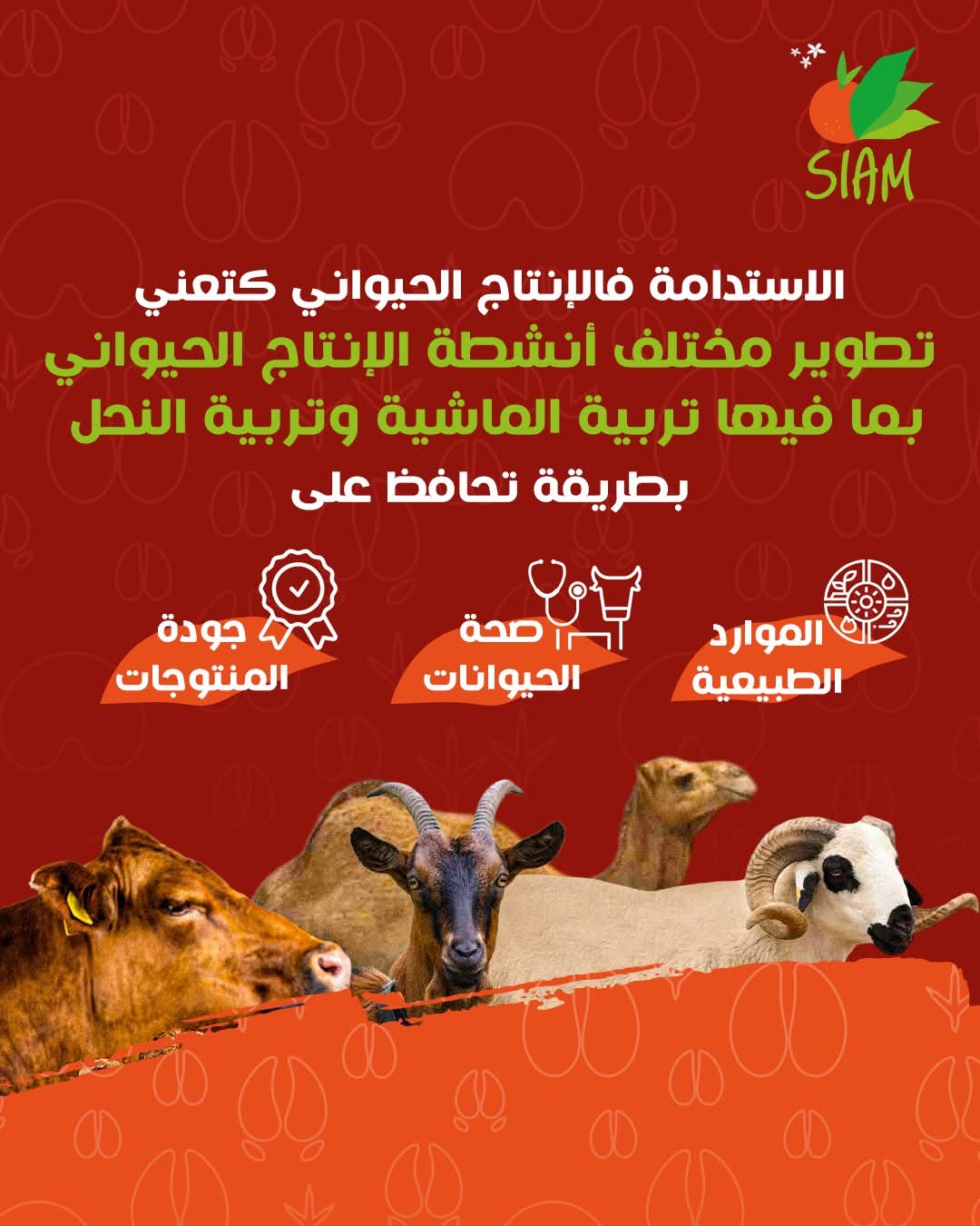 ويركز هذا الشعار على أهمية تعزيز الإنتاج الحيواني بطريقة مستدامة، بما يضمن توفير منتجات غذائية ذات جودة عالية، ويساهم في دعم السيادة الغذائية للمملكة ومواجهة التحديات المرتبطة بالمناخ والموارد الطبيعية.