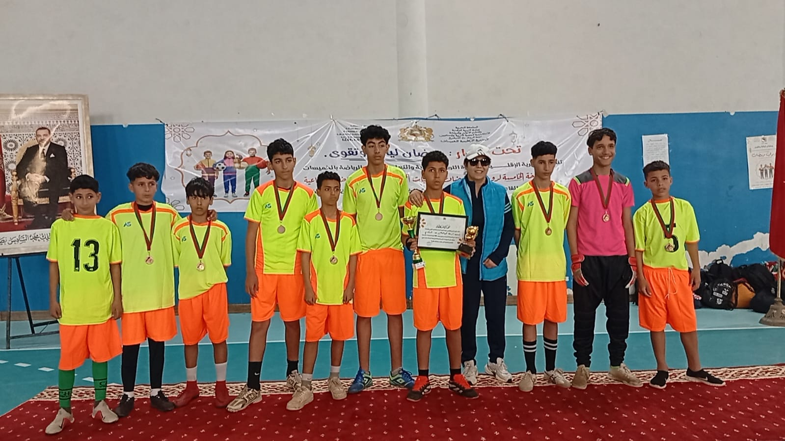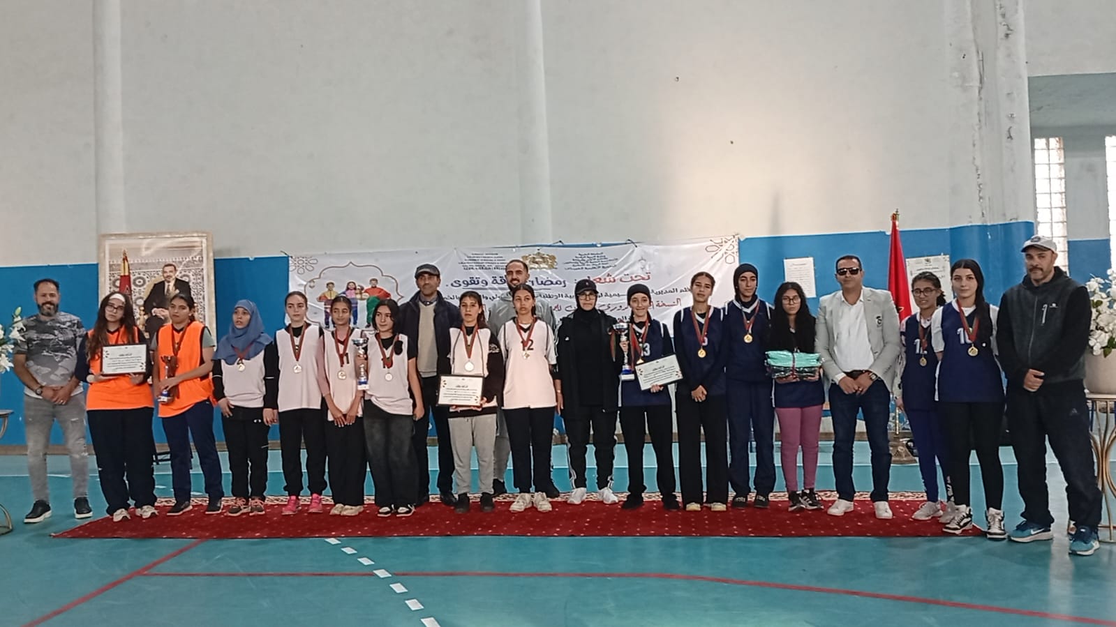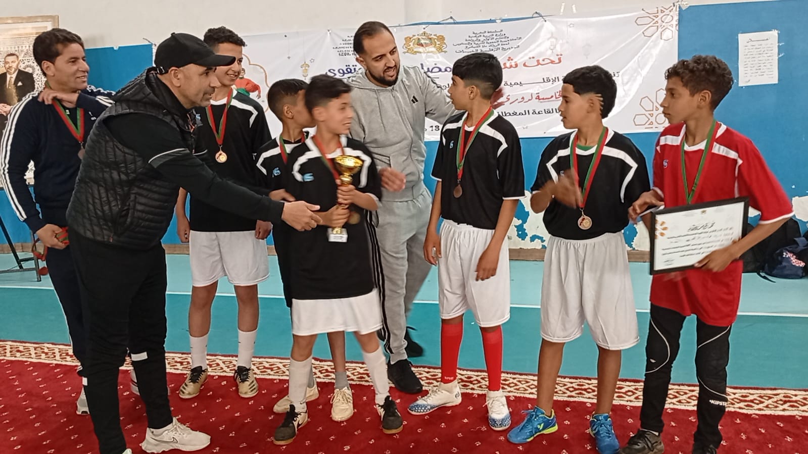 الحفل أختتم بتوزيع الكؤوس والميداليات والشهادات التقديرية على الفرق الفائزة وكذا الطاقم التحكيمي