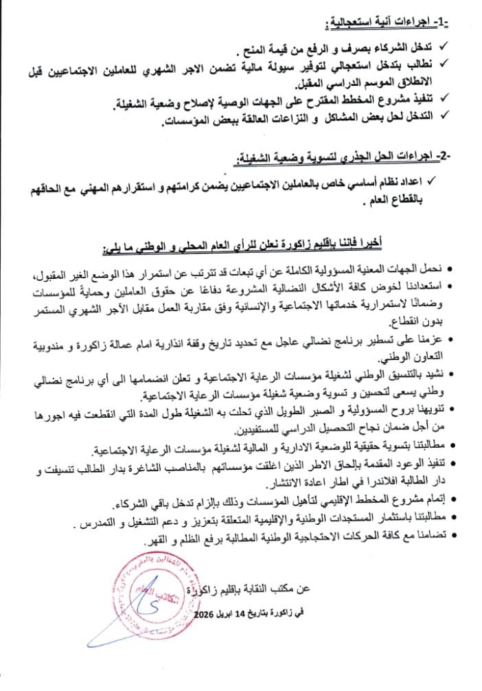 الاجتماعية بزاكورة في زاكورة بتاريخ 14 ابريل 2026
